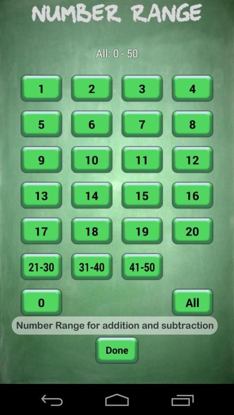 • rentang angka: 0 hingga 50 untuk penambahan dan pengurangan