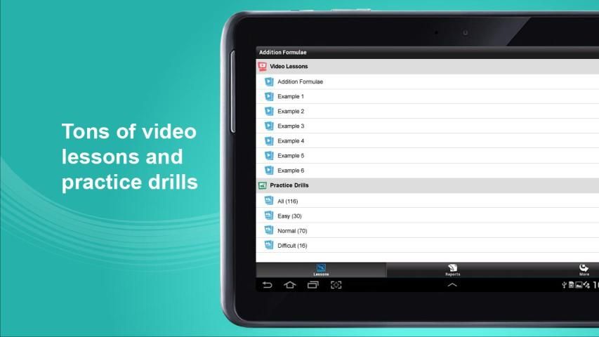 Latihan praktek, dikategorikan ke dalam tingkat mudah, normal dan sulit, digunakan untuk menilai pemahaman pelajar tentang topik tertentu. Pertanyaan-pertanyaan dari tingkat kesulitan khas dari soal-soal ujian. Setiap pertanyaan datang dengan solusi lengkap-model dan fitur auto-penilaian memberikan umpan balik instan pada akurasi serta waktu yang dibutuhkan untuk menjawab pertanyaan