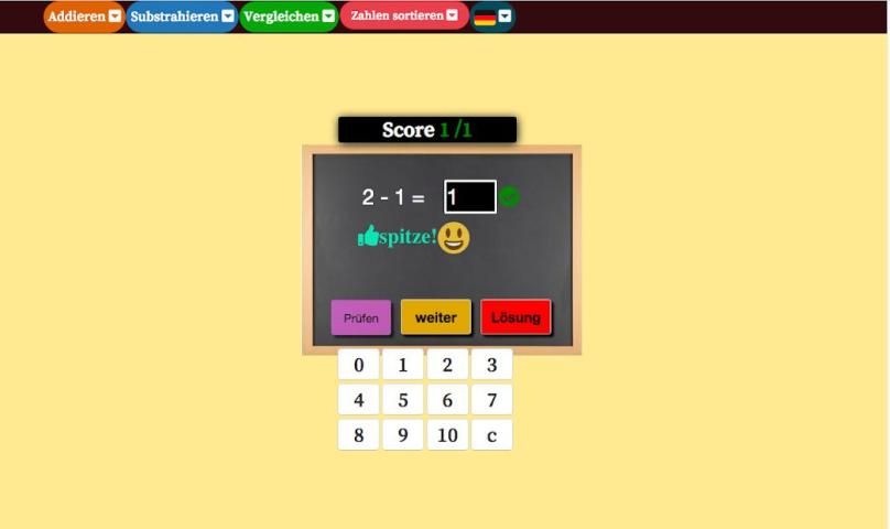 *Mathe für die 1.klasse (grade 1) üben und trainieren mit sofortige feedback und Lösungen.