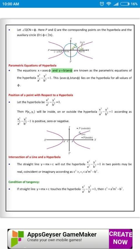 Matematika (AIEEE, IIT-JEE Utama) hiperbola Interaktif e-Book aplikasi Pendidikan