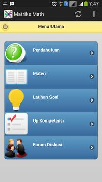 Media pembelajaran mobile learning dikemas dalam bentuk aplikasi android, berfungsi sebagai media pembelajaran matematika untuk siswa kelas X SMK dengan materi matriks. Aplikasi merupakan objek pengembangan penelitian yang dikembangkan dalam rangka memenuhi salah satu syarat untuk mencapai gelar Sarjana Pendidikan