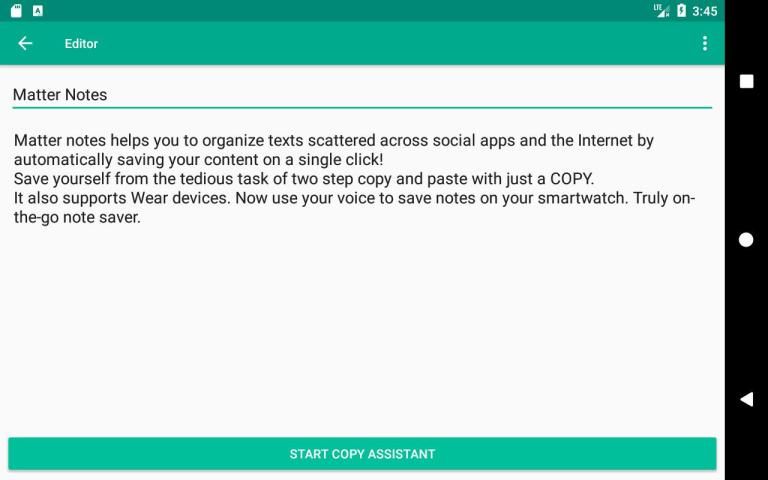 Anda dapat dengan cepat menyimpan catatan dari halaman web atau konten dari aplikasi lainnya dengan bantuan 'Copy Asisten' yang pasta isi disalin langsung ke catatan Anda saat ini secara otomatis.