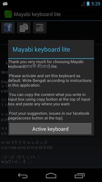 Keyboard lunak Mayabi adalah keyboard di layar dengan dukungan fonetik Bangla / Bengali / বাংলা dan bahasa Inggris untuk platform Android.