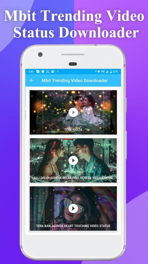Video Status Trending: Saat ini kami menawarkan video yang diputar di pasar. Pembuat Status Video Mbit Jadi Anda dapat menempatkan video status sedang tren di profil sosial Anda.