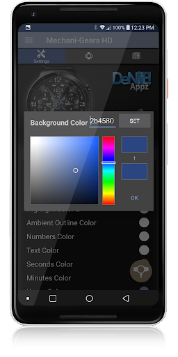 ✔ Pemilih warna untuk memilih warna apa pun yang Anda suka untuk latar belakang, jam tangan, teks, & angka