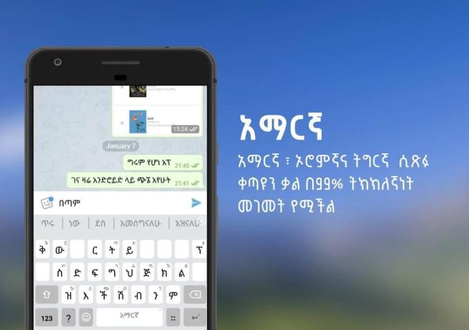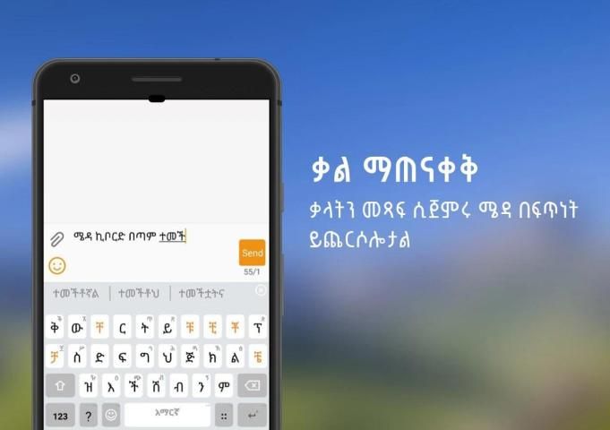 - sangat Amharik, Tigrinya Tigregna kata-kata pada keyboard dengan band