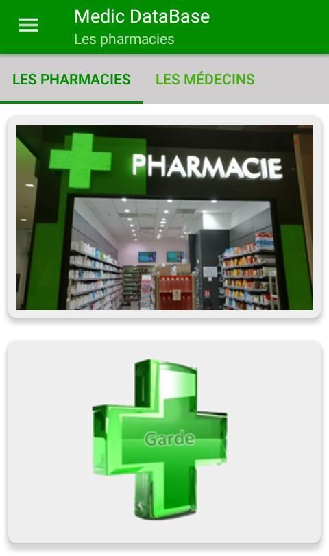 Une application qui Permet à l'utilisateur de se rapprocher de son pharmacien (localisation, contacts et assurances), d’avoir la liste de pharmacies ouvertes 24h/24, celles des garde de weekend et de nuit. Et enfin la carte de visite des médecins par spécialité.