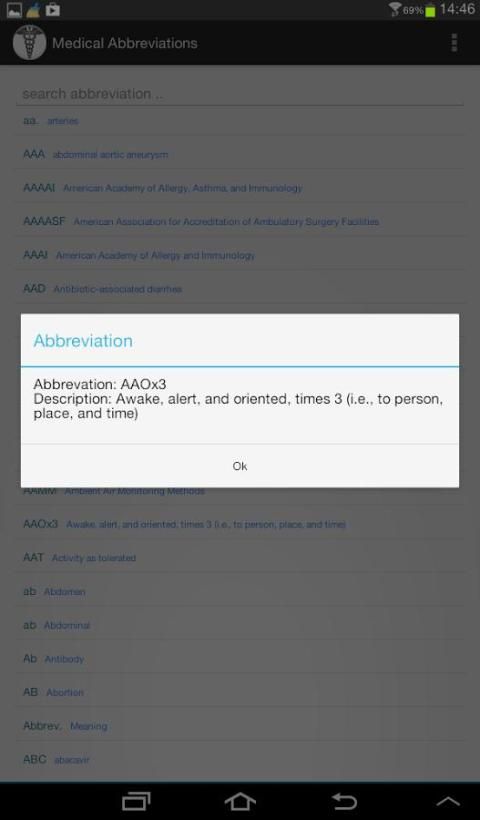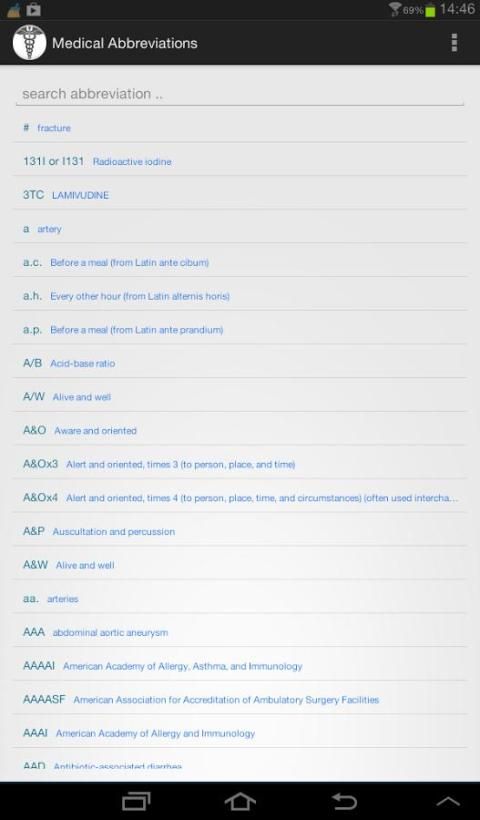 Medical Abbreviations berisi lebih dari 3000 singkatan medis untuk Anda. Singkatan terdaftar bersama dengan bentuk penuh mereka. Anda mudah dapat mencari dan menemukan singkatan Anda, atau hanya menonton daftar. Aplikasi ini sangat ideal untuk transcriptionists medis, mahasiswa, dan profesional kesehatan di semua tahapan karir mereka.