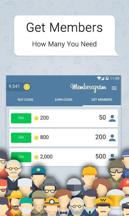 Remember that you can not buy coins inside this app and for that you need to install the first version of MembersGram on play store: https://play.google.com/store/apps/details?id=com.membersgram.play