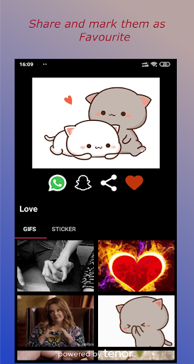 Setiap kategori menyediakan GIF dan Stiker untuk dibagikan.