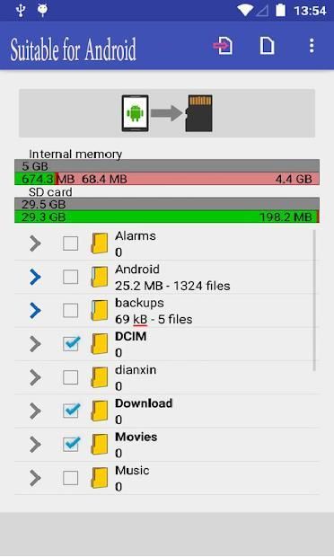 Dengan program ini, Anda dapat dengan cepat membebaskan memori internal telepon Anda atau mencadangkan file Anda ke KARTU MEMORI.