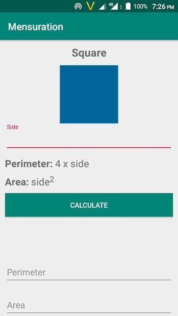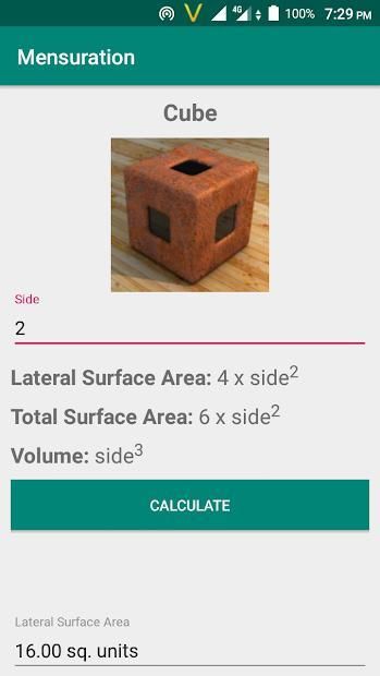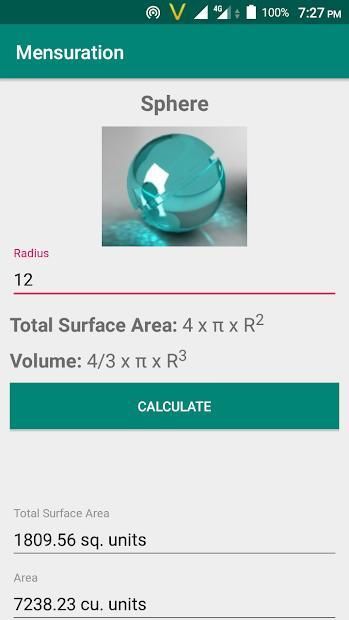 Mensuration is a simple app to learn formula and calculate Perimeter, Area, Lateral Surface Area, Curved Surface Area and Volume of different plane and solid figures like Square, Rectangle, Triangle, Circle, Rhombus, Trapezoid, Cube, Cuboid, Sphere, Hemisphere, Cylinder, Cone etc.