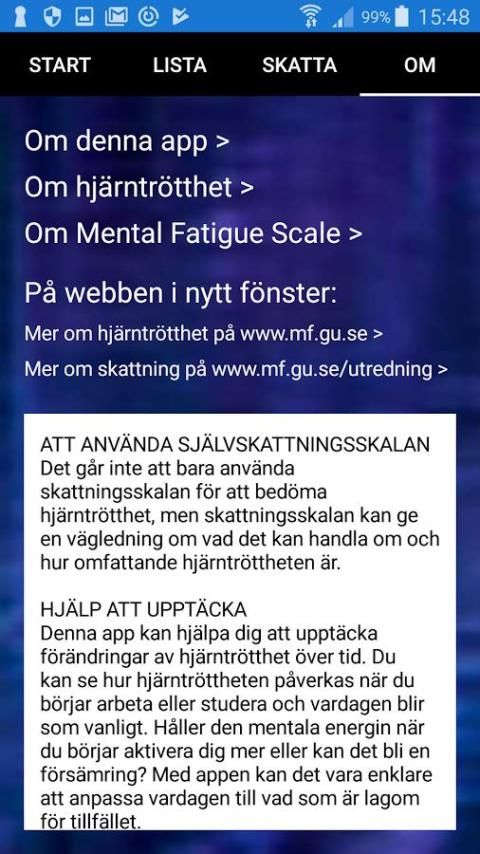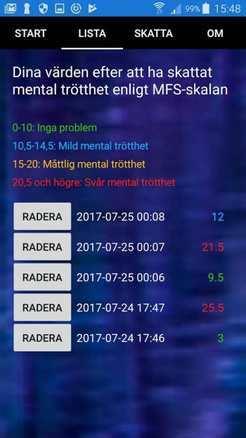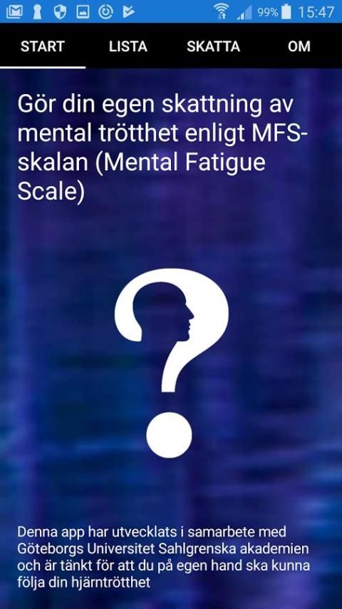 Aplikasi ini dapat membantu Anda mendeteksi perubahan kelelahan otak dari waktu ke waktu. Setelah Anda telah menjawab semua pertanyaan mereka dijumlahkan bersama-sama dan hasilnya ditampilkan dalam hasil.