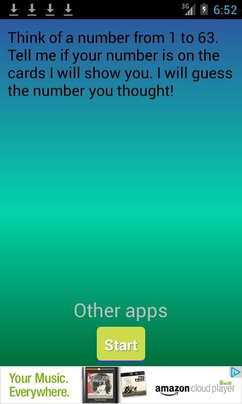 Aplikasi gratis ini menebak jumlah Anda pikirkan, itu adalah trik sulap yang lucu dan mengejutkan Anda harus mencoba. Jika Anda ingin menjadi seorang mentalis otentik mencoba permainan ini dengan orang-orang seperti teman-teman dan kerabat dan Anda akan menjadi penyihir misterius. Aplikasi gratis ini sangat cocok untuk membuat trik di mana saja.
