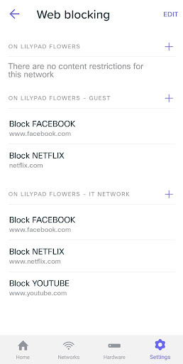 * Memprioritaskan bandwidth, menetapkan batas penggunaan, atau memblokir situs web dengan mudah