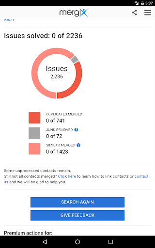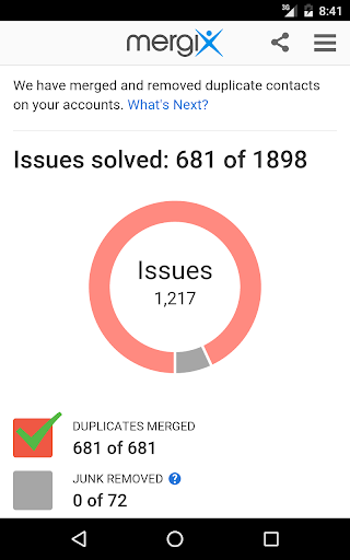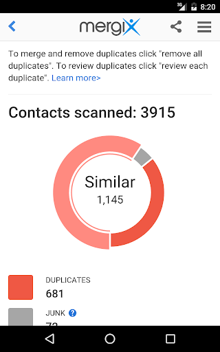 * Pindai Perangkat Anda ( S) / Akun Email (s) dan temukan kontak duplikat secara otomatis.