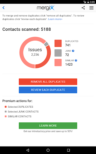 * Tinjau kontak duplikat yang terdeteksi dan gabungkan semuanya dalam satu klik;