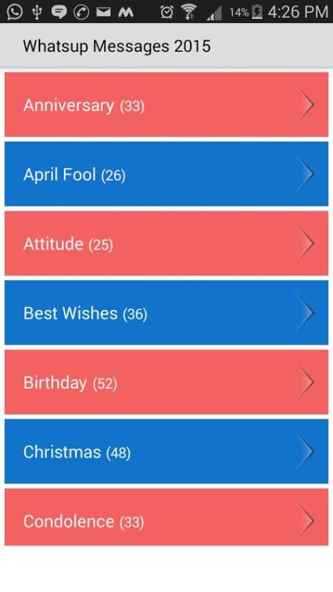 Here provides top Free Android Apps. 20,000+ users downloaded Whatsapp Messages 2015 latest version on 9Apps for free every week! It's not only an app it also teaches you how to use it. This hot app was released on 2014-12-18. If you want it so go head and download it and enjoy your app.