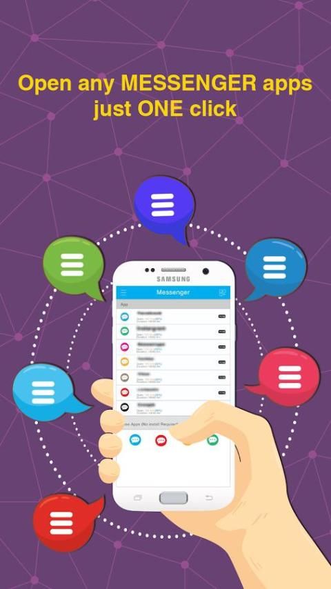 Tidak ada lagi mencari aplikasi social messenger. Dengan Messenger, hanya perlu satu kali klik untuk mengakses semua aplikasi messenger Anda kapanpun Anda inginkan.