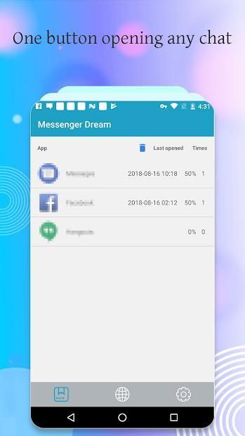 Messenger Dream is a powerful tool which help you search social Apps easier and faster, access to chat world so easy. Just one-tap to open your social app whatever you want, including Twitter, Facebook, and more. It also saves your used record and show you the open times of each social app, find the most used messenger app.