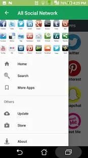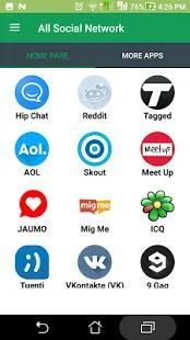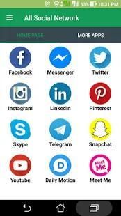 This apps contains all popular social networking sites and one can access your favorite social media such as Facebook Twitter Instagram Pinterest LinkedIn Telegram Snapchat Tumblr Baddo hitwe Skout Twoo Mico Reddit AOL ICQ Meet Me Digg Imgur Tuenti etc. and many more through this app.