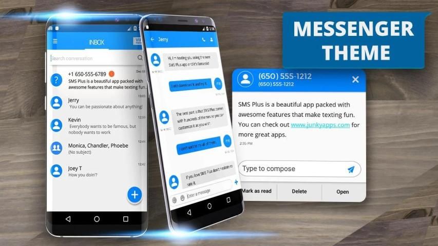 New Messenger Versi 2018 SMS TEMA adalah tema khusus dan panas SMS yang akan membawa smartphone Anda tampilan baru nyata & merasa. Periksa desain pribadi GRATIS ini untuk aplikasi SMS Anda sekarang!