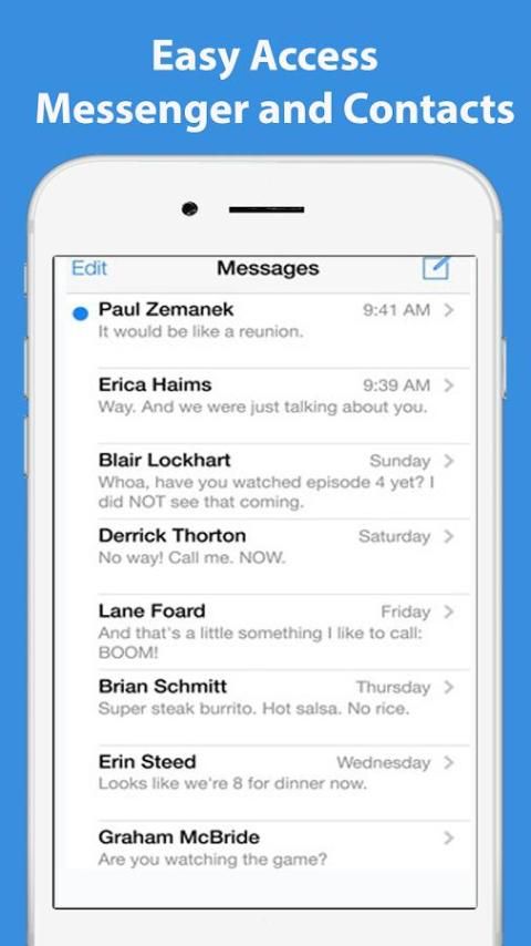 Utusan Anda hanya perlu satu sentuhan untuk dapat membuka semua pesan, panggilan tak terjawab, panggilan video, dan kontak di ponsel Anda.