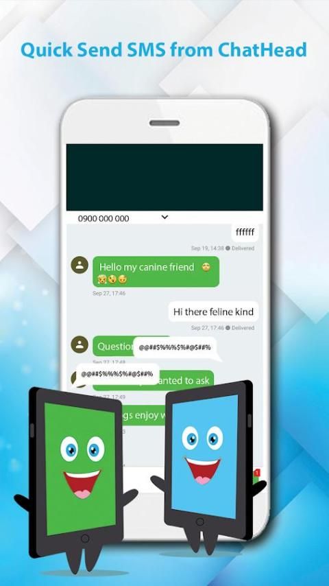 Gunakan floating chatHeads, Messenger SMS membantu Anda mengirim sms cepat, membuat panggilan telepon cepat untuk teman-teman dan keluarga. Mengirim pesan, membuat panggilan setiap saat, tidak mengganggu tindakan Anda saat ini. Menginstal cepat.