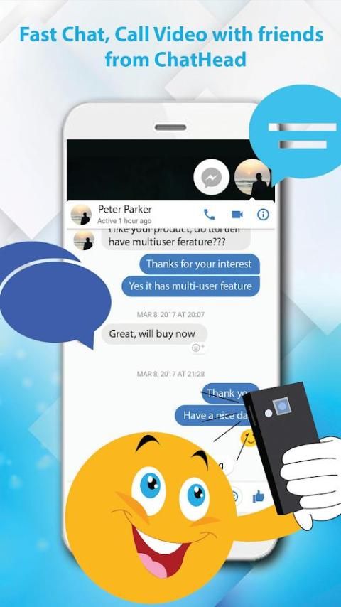 Kata kunci: Messenger, chatHeads, SMS, Pesan, Emoji