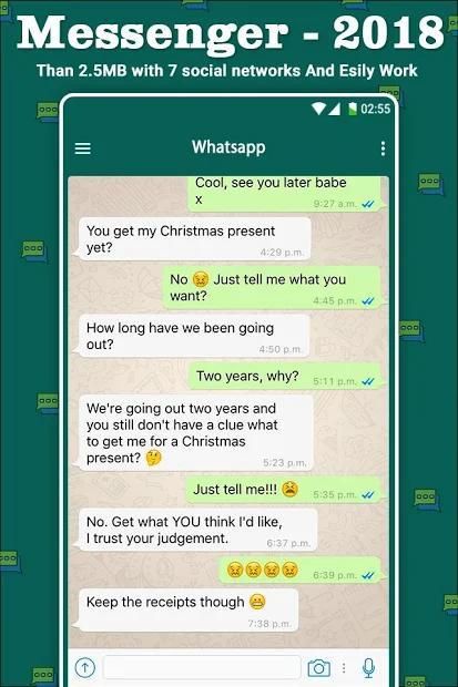 Messenger Messenger adalah Messenger Messages gratis untuk ponsel Android. Messenger satu aplikasi akan membantu semua pengguna membuka dari layar apa pun, Messenger Bebas, Pesan Gratis, aplikasi Perpesanan, Pesan Gratis, aplikasi Panggilan Video, Panggilan Gratis, Pesan Teks, dan pesan teks / pesan MMS, aplikasi Obrolan Gratis, aplikasi Email, dan lainnya SMS populer, messenger perpesanan dan aplikasi sosial populer seperti Facebook, Twitter atau Instagram dan semua aplikasi sosial lainnya dengan sangat cepat dan gratis !!!