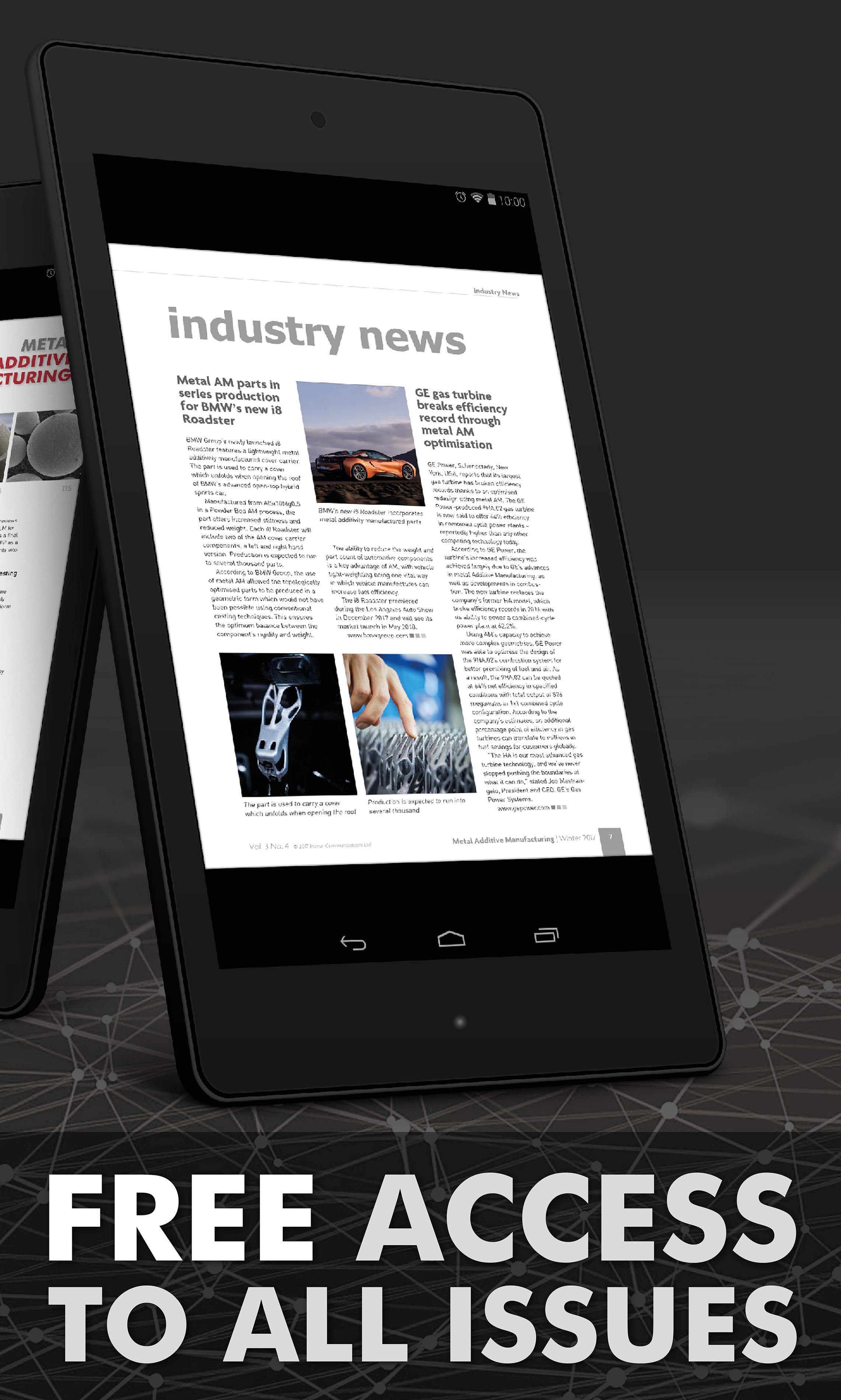 Download the app now to read every edition of Metal AM free of charge, keep up to date with the latest 3D printing news, and be notified each time a new issue is delivered to your library.