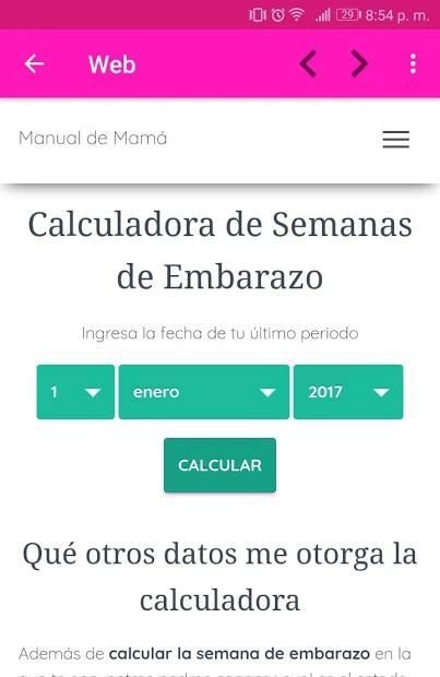 Esta app de embarazo tambien cuenta con un increible funcion que te permite calcular tus semanas de embarazo, asi sabras de manera aproximada en que semana de tu embarazo te encuentras y la fecha aproximada del nacimiento de tu bebe.