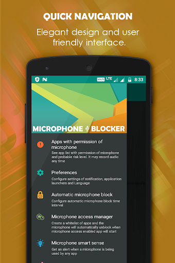. They might record audio any time in background without knowing to you and may transfer to web. Microphone blocker will protect your privacy by blocking phone's microphone access.