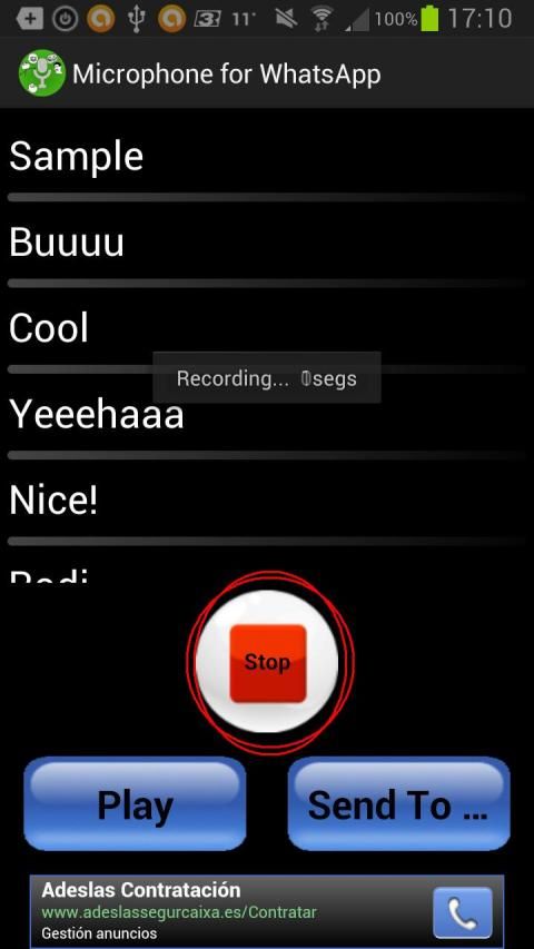Microphone for WhatsApp is easy to use. Just install the application, press the record button and save your idea. You will always have the recorded sound in your list of favourite sounds, and you will be able to quickly send it to your WhatsApp contact. Laughter is assured!.