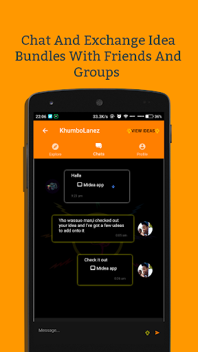 Share ideas with your friends. make it easy by sending them an idea bundle instead of going through a series of app multitasking looking for the right words and right images to get your idea communicated. Communicate in group messages for group ideas.