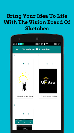 Having trouble remembering or tracking your ideas? Build idea bundles to help you map out your ideas for a comprehensive outlook on how to tackle them. The app will give you guidelines on what exactly you need to focus on building your idea and bringing it to life with a vision board that has clusters of sketches. Each sketch contains an uploaded or sketched image along with and array of notes and a voice note for extra detail.
