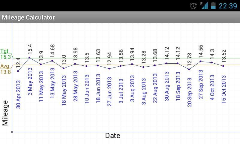 Ada fitur untuk menyimpan nilai-nilai dihitung dengan tanggal. Anda juga dapat memeriksa nilai mileage yang disimpan pada grafik garis sederhana. Aplikasi ini juga menampilkan nilai-nilai terakhir diperiksa ketika itu menjalankan waktu berikutnya.