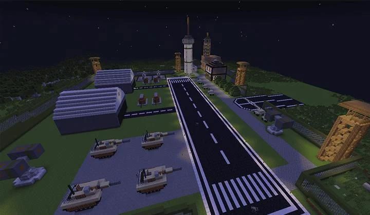 The Military Base for Minecraft consists of a bunker complex, field armory, and turret, than a laboratory and submarine base underneath. Epic Cliffs is one of the best mountain bases you'll discover for MCPE. There are a lot of secret tunnels which connect the most places and the military base on the map for Minecraft. Military maps for Minecraft contains mix of modern buildings and an army base. Homes look very luxurious with swimming pools and mansion sized houses. On the surrounding outskirts of the city are the army buildings such as hangars and helicopters landing pads. There is even a harbor where you can find a big army boat. Military Base for MCPE is a fully decorated wars base that includes a prison, guard tower, armory, training course, and more! There is also a secret to this map! So get your platoon and start training! A Naval Base filled with many warships. In addition to the naval base, it is also has an Army base with Humvees and Military Trucks. Airbase running too, featuring a lot of of various military aircraft. All buildings on the Wars map for Minecraft include fully decorated interior. Military Base map for MCPE also includes vehicles and aircraft. We hope you enjoy our map, perfect for PVP.
