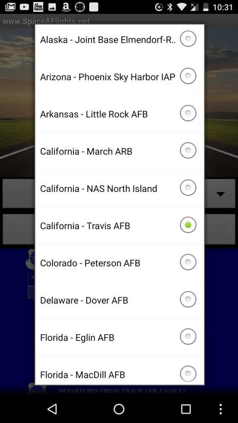Space-Available (Space-A) Flight Schedules for over 50 military bases consolidated in a handy Android app! Quick-dial buttons connect you via phone to passenger terminal representatives and/or to automated flight recordings!