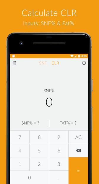 DairyCalculator for calculating the SNF% based on the CLR and FAT%.