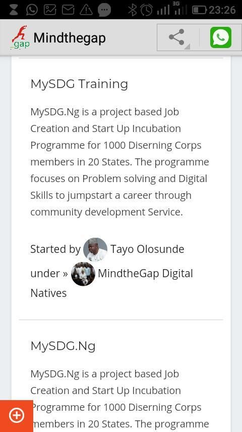 MindtheGap, sebagai mitra utama di Nigeria telah melatih lebih dari 160.000 Pemuda Nigeria pada Keterampilan Digital. Banyak pemuda melalui workshop kami telah mampu membangun sebuah kehadiran online untuk diri mereka sendiri dan untuk bisnis; membuat konten, memahami desain web, pengalaman pengguna, media sosial dan periklanan digital. Kami sangat percaya Nigeria akan mengembangkan secara keseluruhan, jika pemuda kita secara digital menyadari alat yang tepat untuk posisi peluang dalam dan luar negeri.