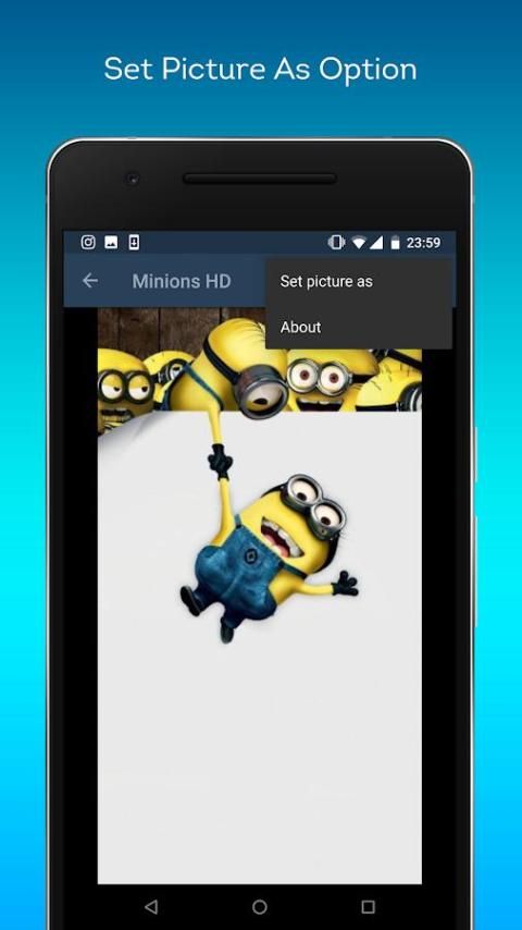 Minion Wallpaper HD didukung semua perangkat Samsung, HTC Devices, Sony Xperia Series, Xiaomi Mi ponsel, Google Nexus & Pixel, OnePlus, LG, perangkat Leeco, seri Huawei, Gionee ponsel, perangkat Intex, Lava, Micromax, Lenovo, Motorola, Oppo, Panasonic, Philips, BenQ, Amazon ponsel, Binatone, perangkat Vodafone, InFocus, HP, Huawei Mate delapan dan banyak lagi.