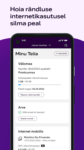 Aplikasi Telia saya adalah layanan self seluler yang ringkas untuk pelanggan Telia.Dengan ini, Anda dapat dengan nyaman mengawasi penggunaan internet Anda, menjalankan biaya dan faktur.