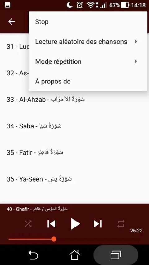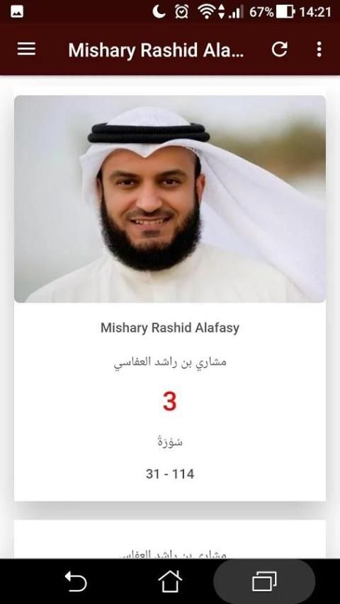 Aplikasi ini memungkinkan Anda mendengarkan Quran Audio penuh dibacakan oleh Al-Afasy pada smartphone Anda dan tablet tanpa perlu koneksi internet.