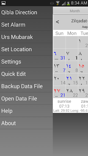 - Menampilkan tanggal Hijri dan Gregorian pada tampilan bulan.