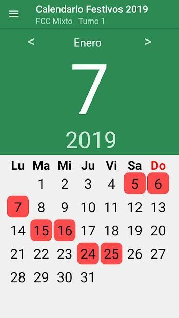Calendario de Festivos correspondientes al Turno Mixto para el año 2019