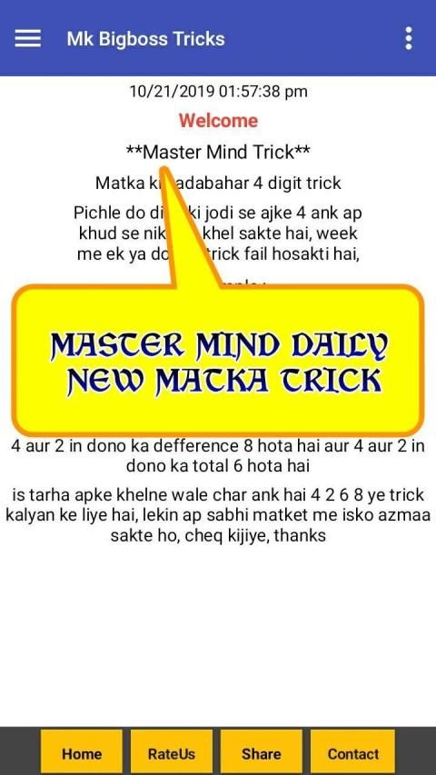 Mk Bigboss is an satta matka trick guesser,