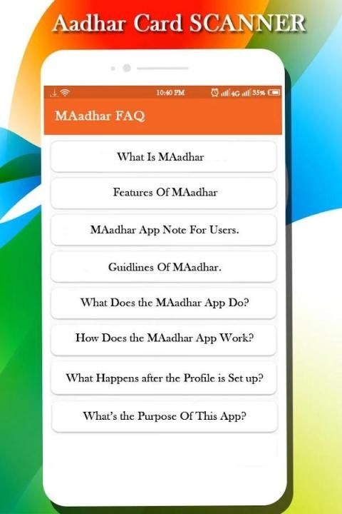 - Scan Kartu Aadhar Anda QR-Code dan mendapatkan semua rincian Aadhaar di pada ponsel Anda.