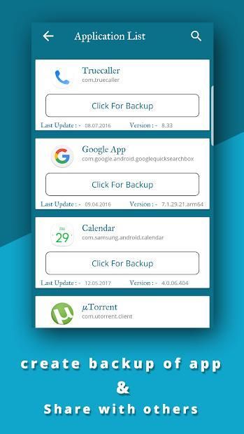 With the help of this application you can take backup of apk of all apps installed in your app both installed and system application. You can share all backup apks.