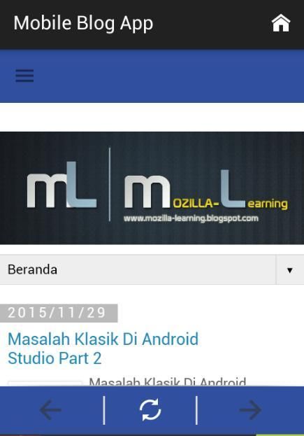 *catatan : Aplikasi ini tadinya akan diberi nama Mozilla Learning tetapi karena menggunakan nama Mozilla yang notabennya sudah digunakan oleh Nama Browser Firefox sendiri jadi agar tidak terkena lisensi dari pihak google maka dengan berat hati aplikasi ini dirubah menjadi "Mobile Blog App"